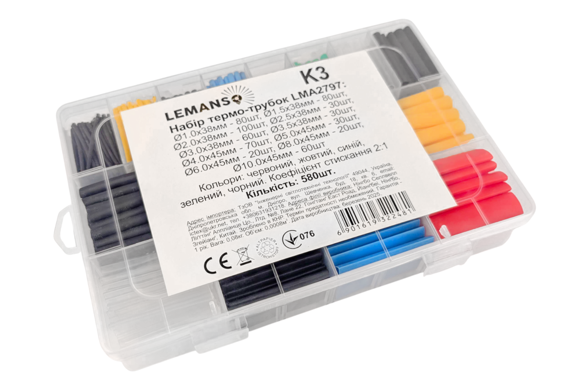 Set of thermo-tubes in a box 38/45mm 580pcs shrinkage coefficient 2:1/LMA2797 Lemanso