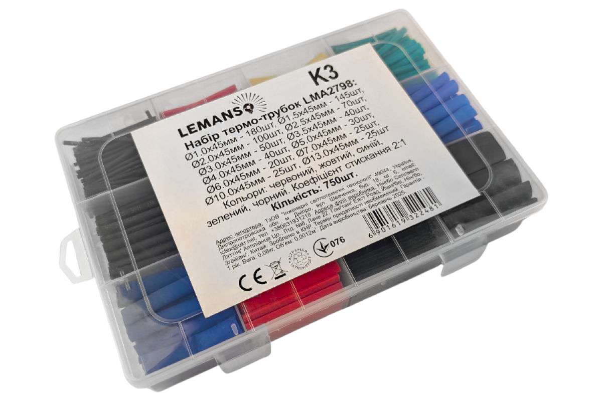 Set of thermo-tubes in a box 45mm 750pcs shrinkage coefficient shrinkage 2:1/LMA2798 Lemanso
