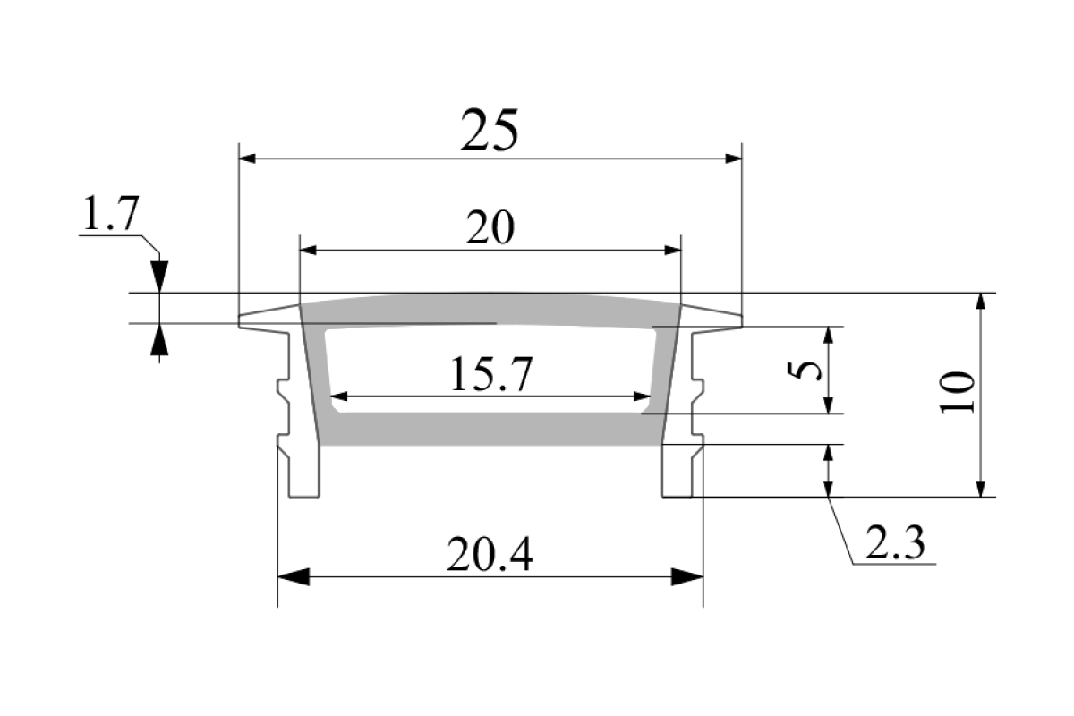 Silicone profile for LED strip 25x10 1 meter recessed SP-6 IP67 without a thread (100m in a reel) LEDUA