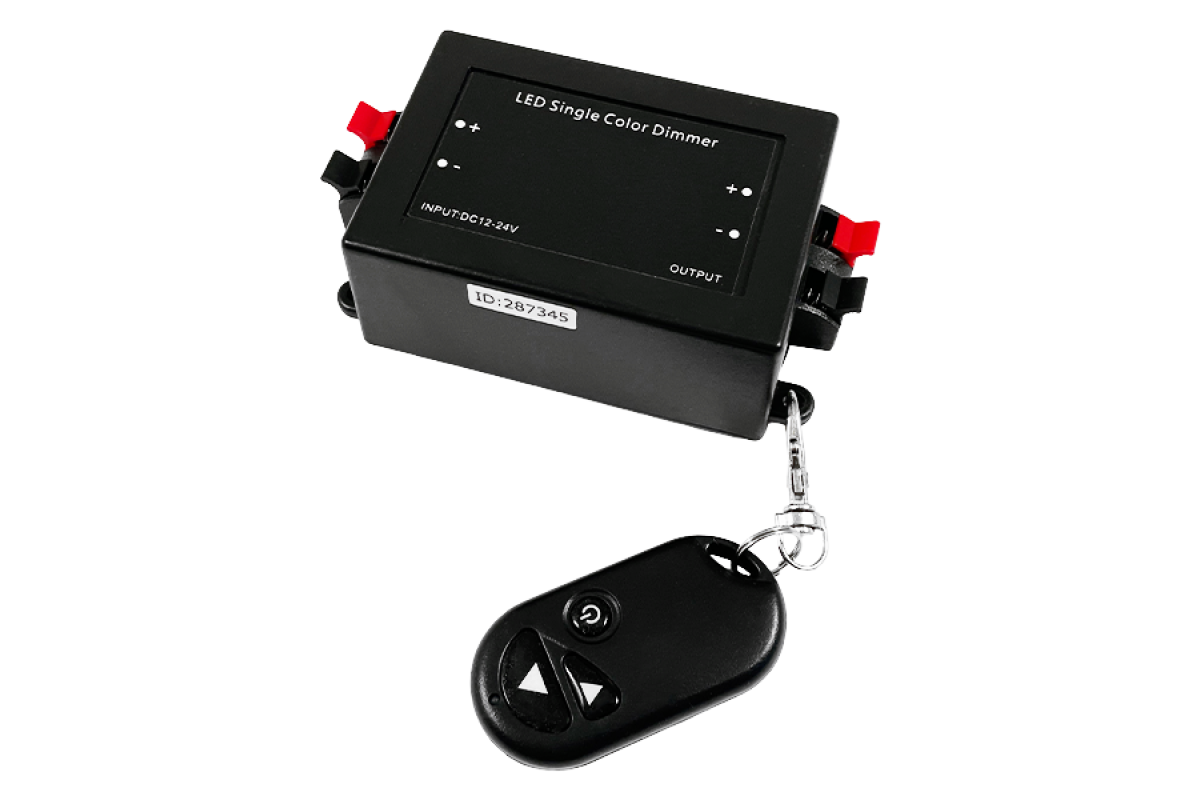 Remote control batteries: 27A 12V (not included). Dimmer power: 12V-96W, 24V-192W