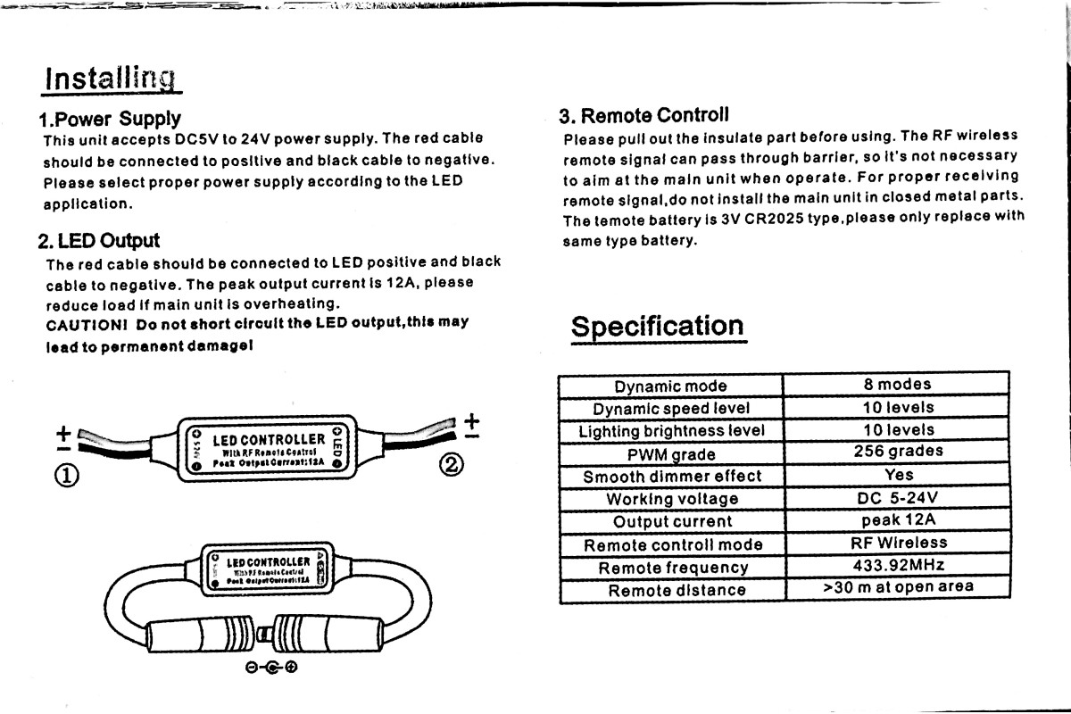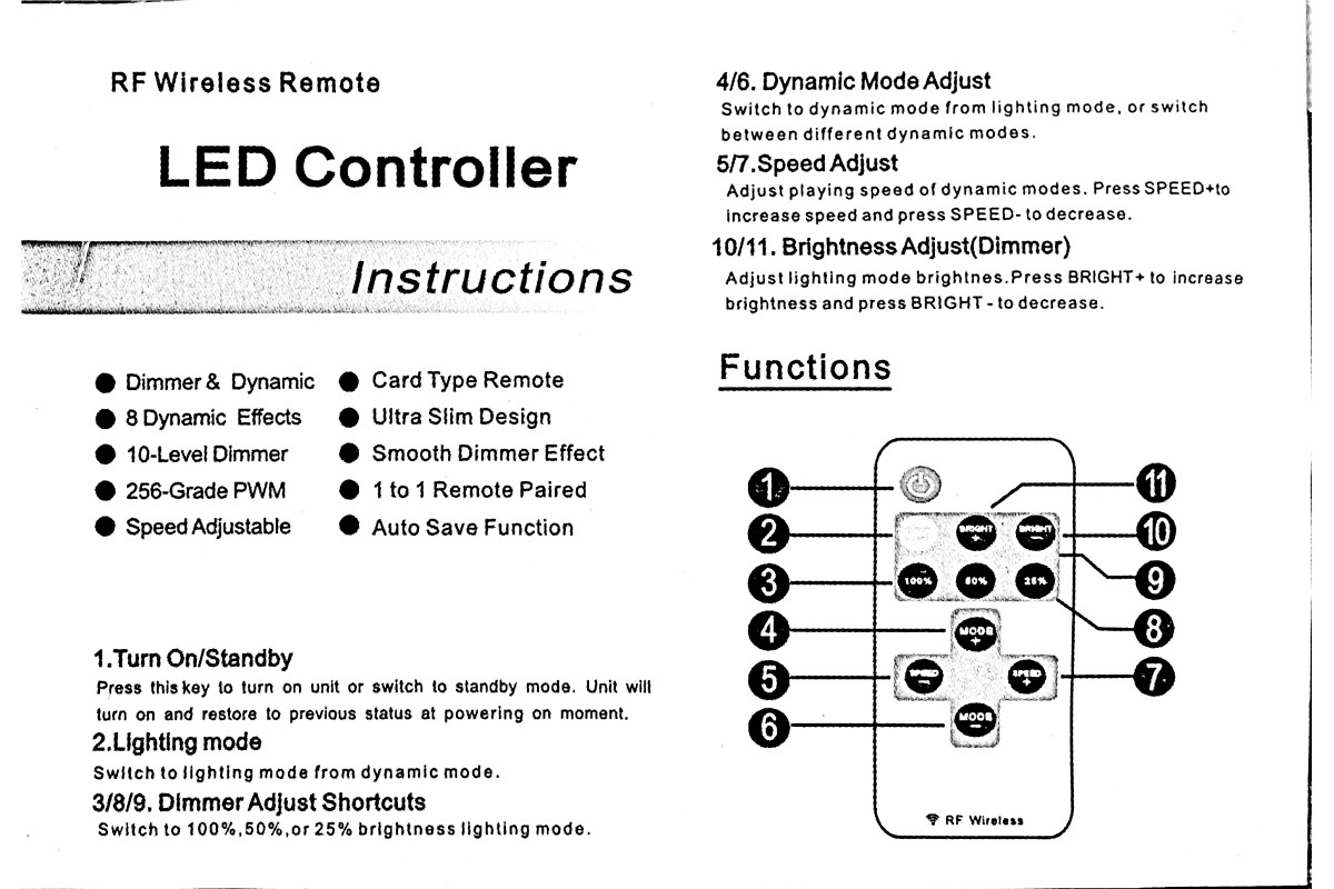 Single-channel mini dimmer 12A 5-24V radio - 11 buttons LEDUA