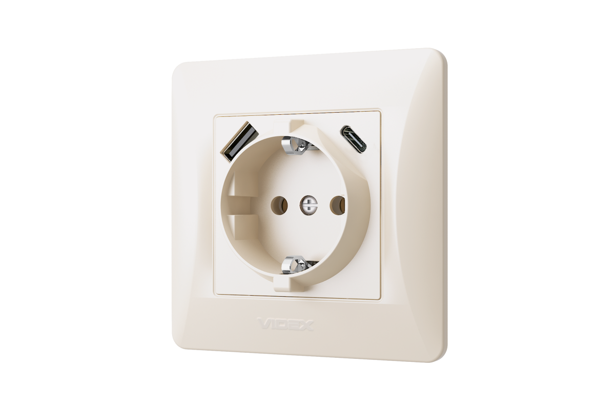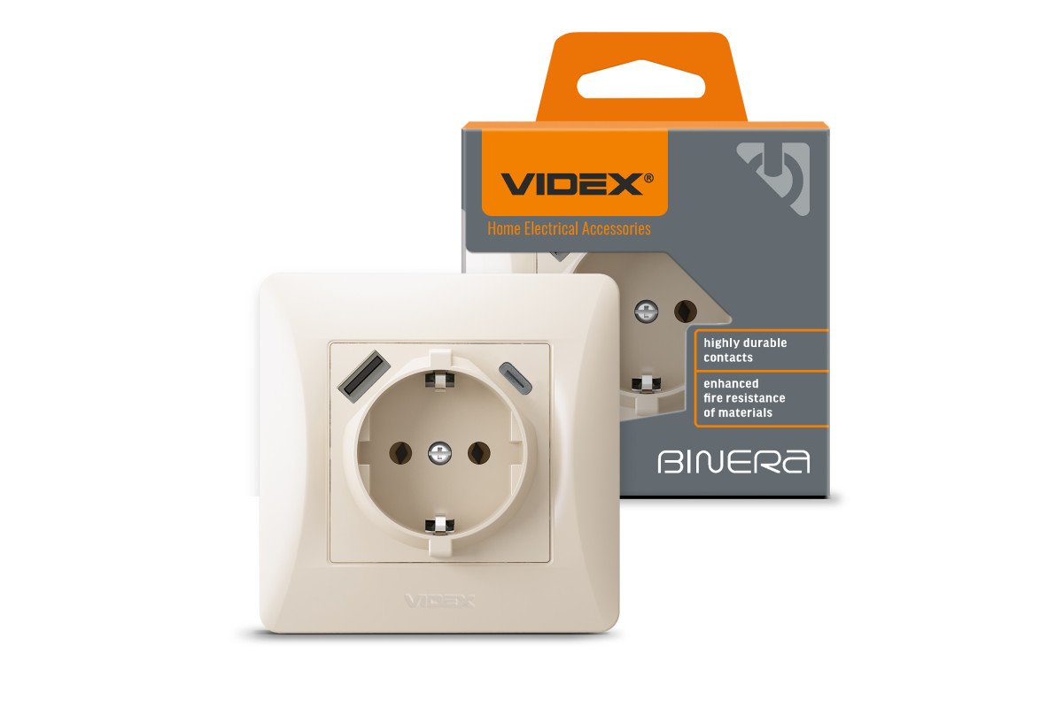 Single socket with grounding with USB+USB-C cream VIDEX BINERA