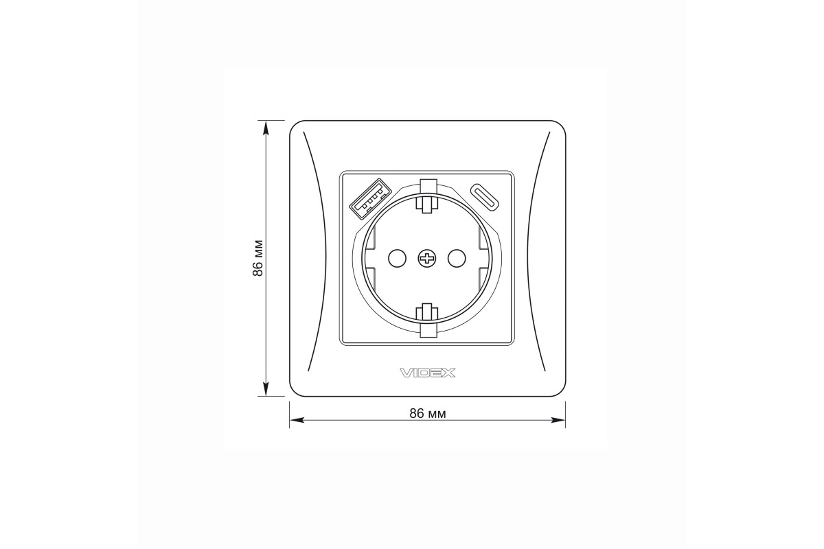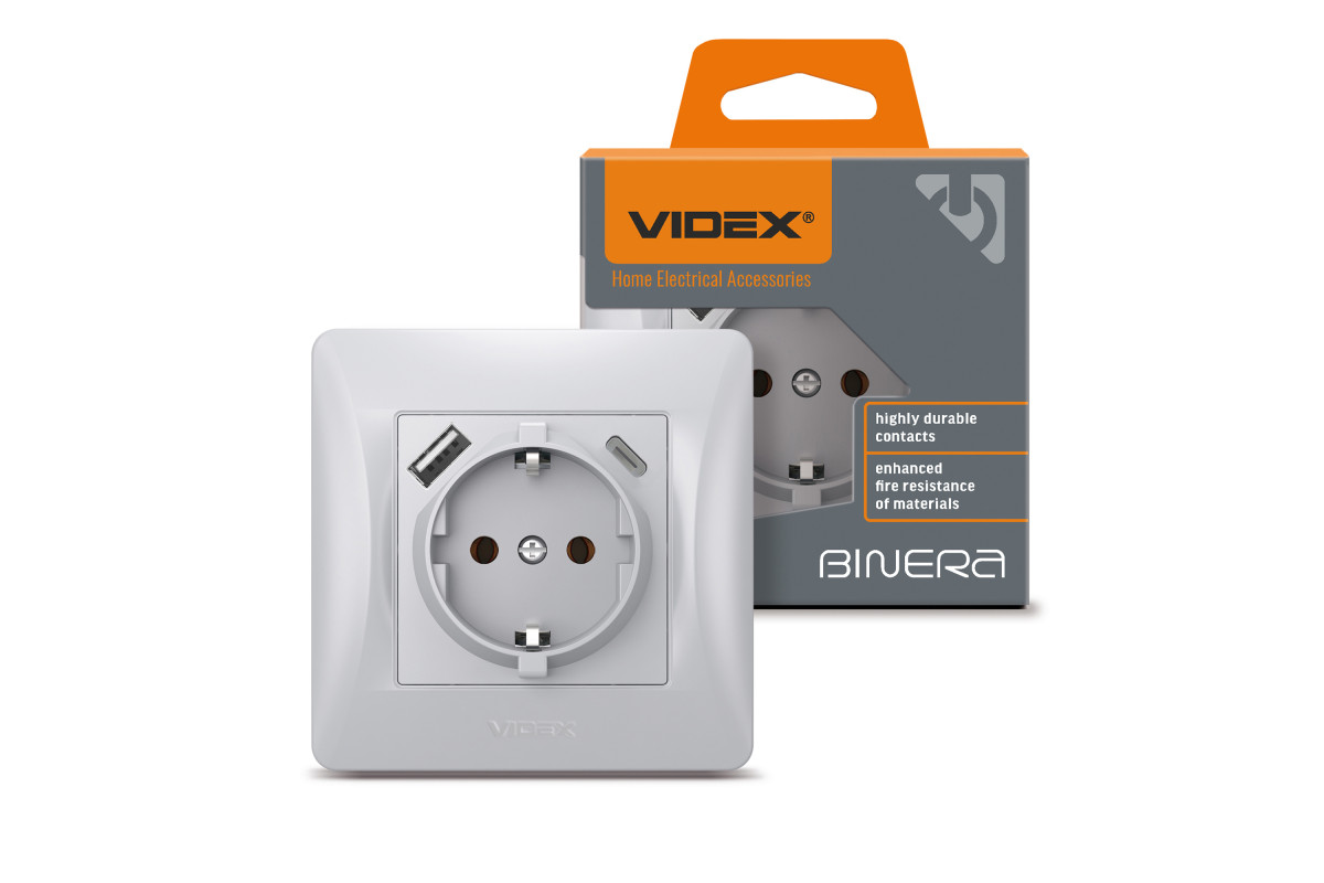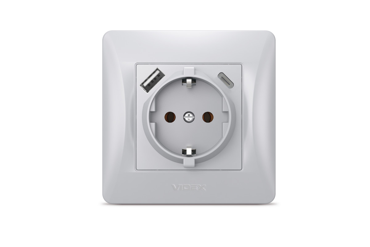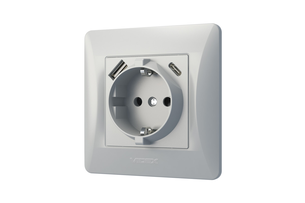 Single socket with grounding with USB+USB-C silver silk VIDEX BINERA