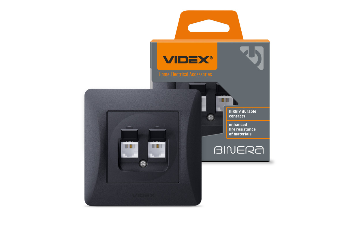 Socket CAT3+CAT3 double telephone black graphite VIDEX BINERA