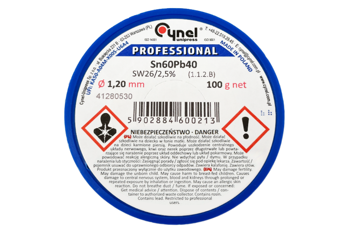 Solder Cynel Sn60Pb40-SW26 1.2mm, 100g 13-0918