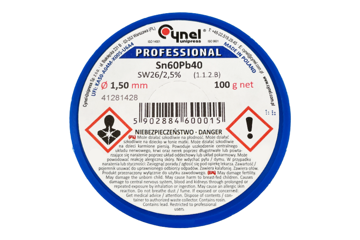Solder Cynel Sn60Pb40-SW26 1.5mm, 100g 13-0921