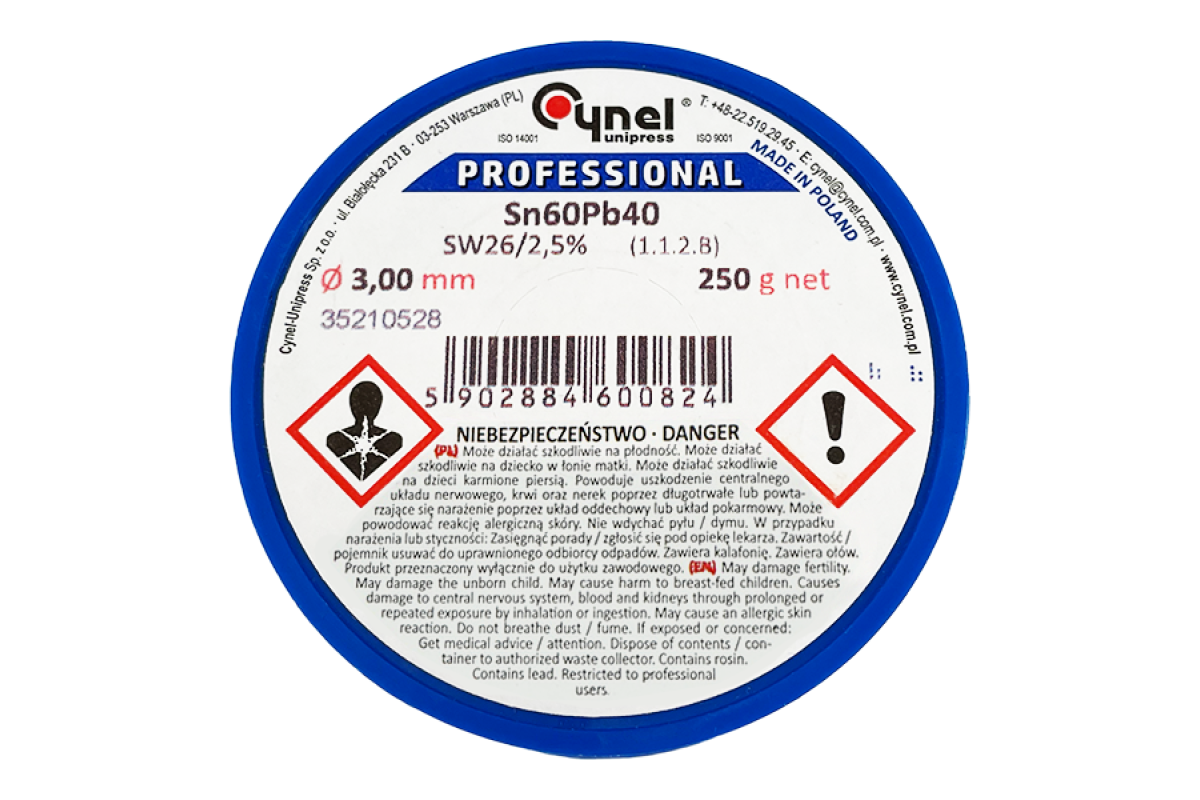 Solder Cynel Sn60Pb40-SW26 3mm, 250g 13-0934