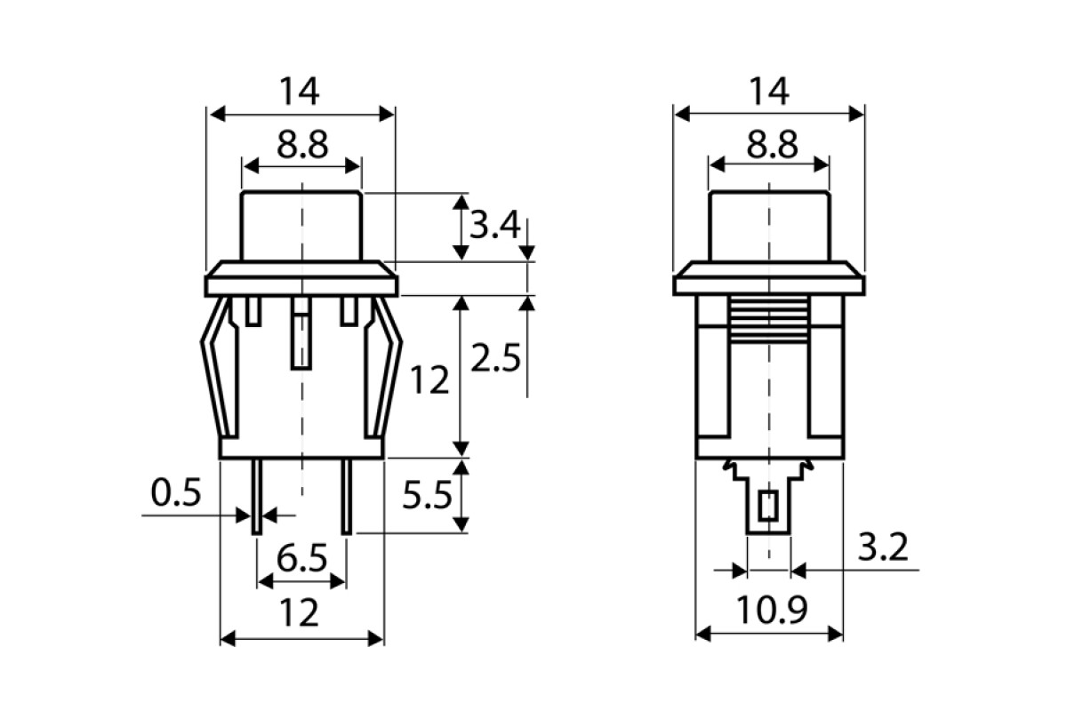 Square button PBS-18B without locking ON-(OFF) 2-pin, 25mA 50V, red LEDUA
