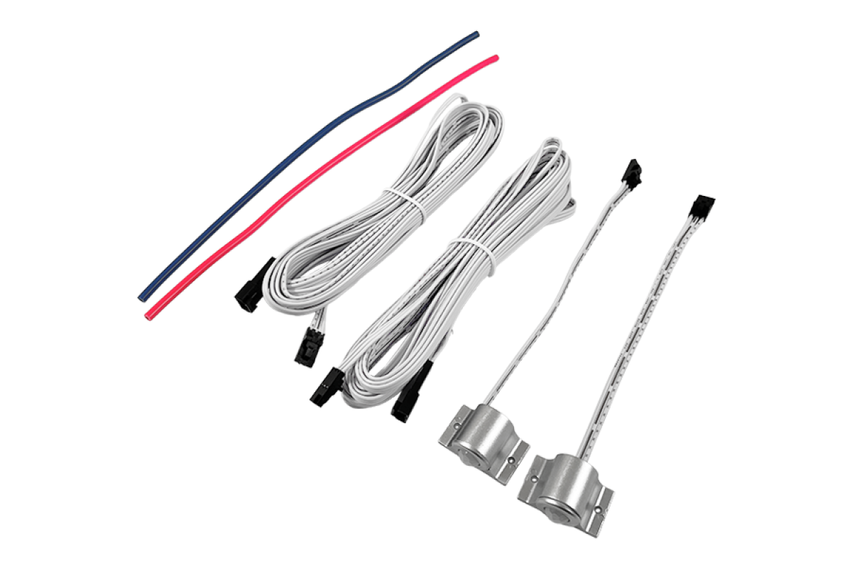 Controller, motion sensors 2 pcs, extension wires for sensors 2 pcs, cable for connecting to the power supply 2 pcs, stickers, screwdriver