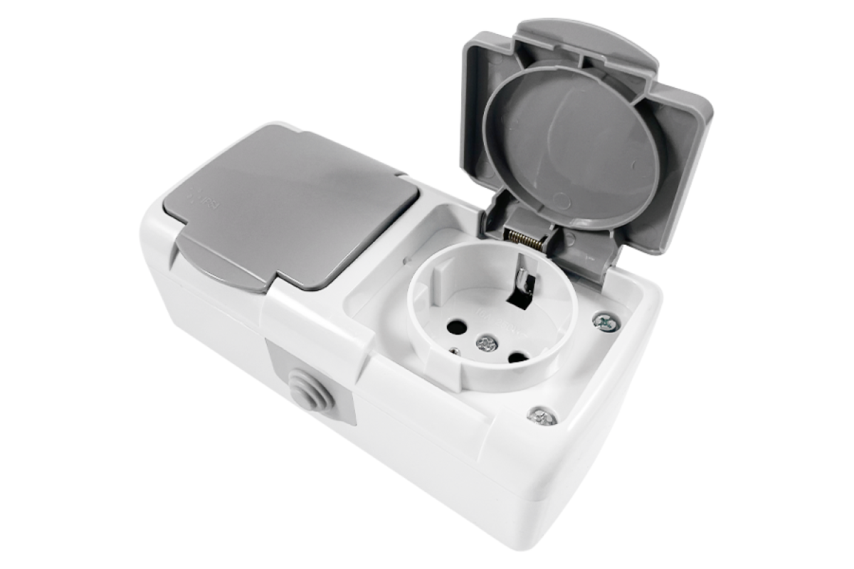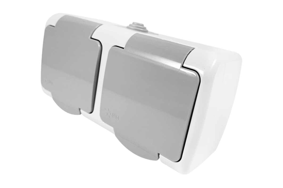 Surface socket 2-way with grounding + cover Nemo gray LMR2409 Lemanso