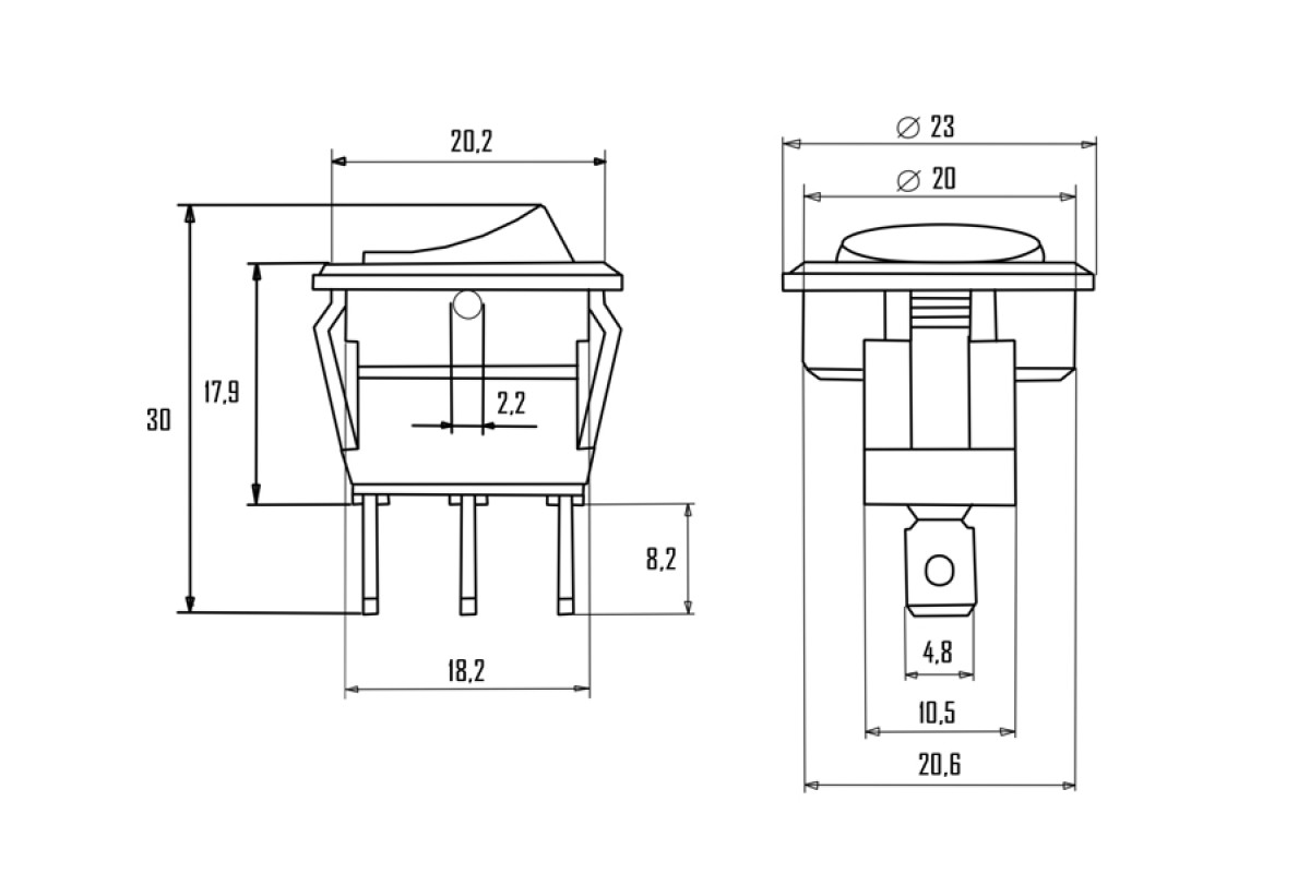 Switch KCD1-101-5;on-off 2pin round white LEDUA