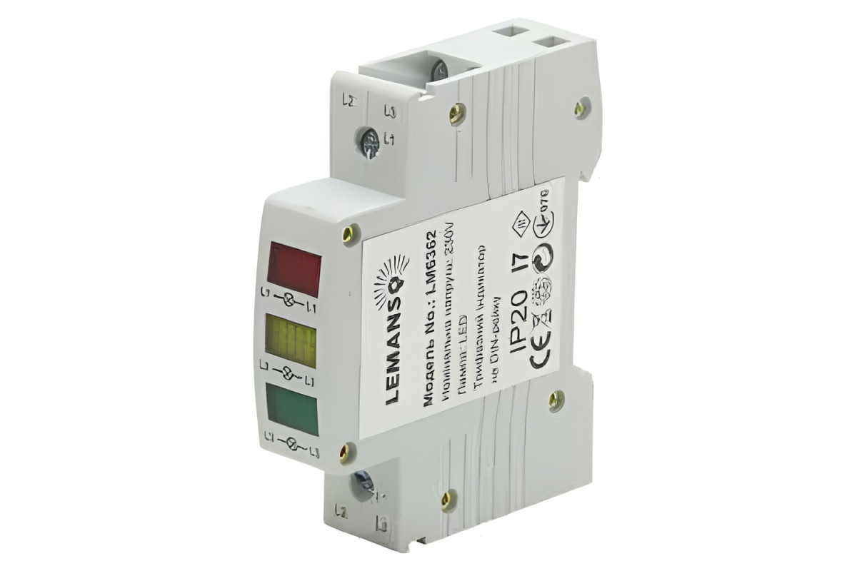 Three-phase voltage indicator 230V Lemanso on DIN-rail (3 colors: red, yellow, green) LM6362
