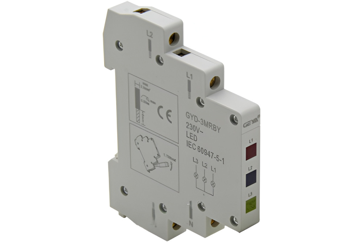 Three-phase voltage indicator 230V thin Lemanso on DIN-rail (3 colors: red, yellow, green) LM6380