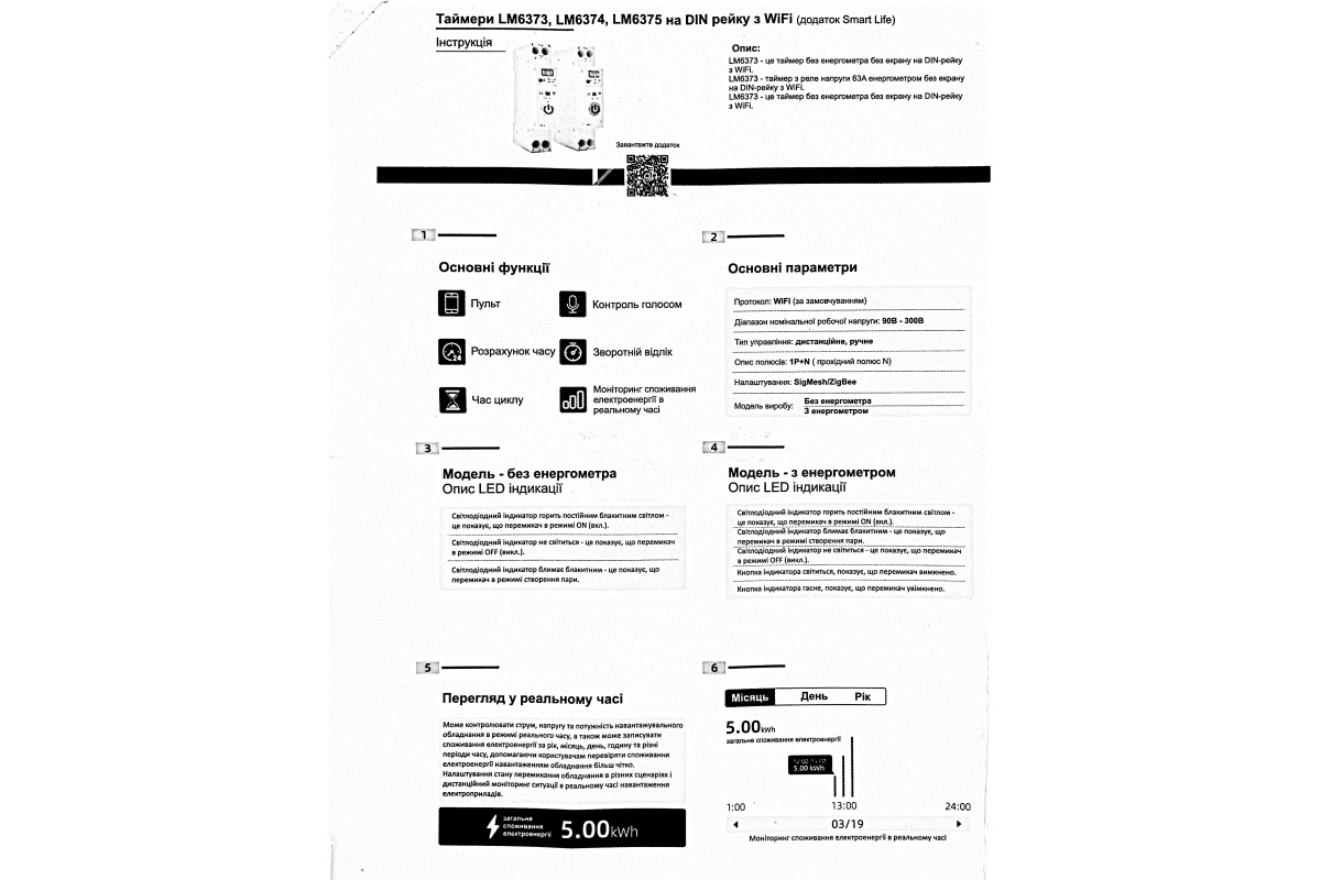 Timer + voltage relay 63A + energy meter without screen Lemanso on DIN-rail with wi-fi LM6375 Smart home Tuya