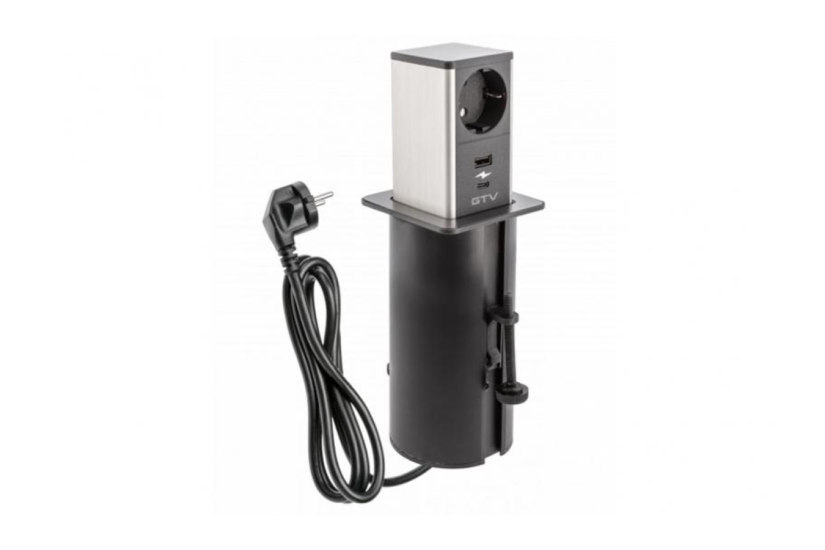 TOWER extension cord 1 SCHUKO socket 1xUSB 1xTYPE-C cable 1.5m with plug 180-250V Black GTV