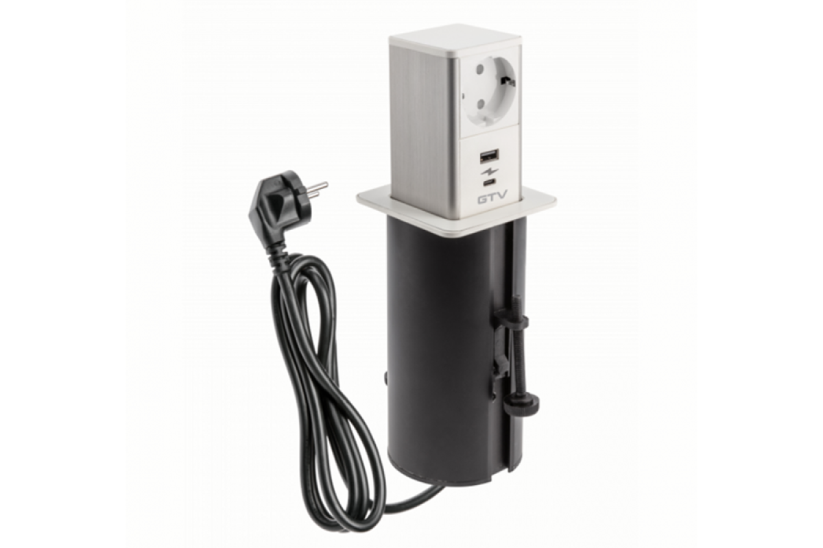 TOWER extension cord 1 SCHUKO socket 1xUSB 1xTYPE-C wire 1.5m with plug 180-250V white GTV