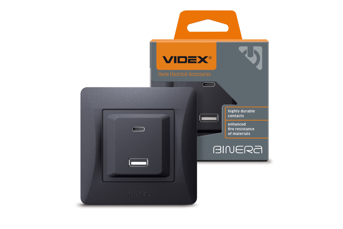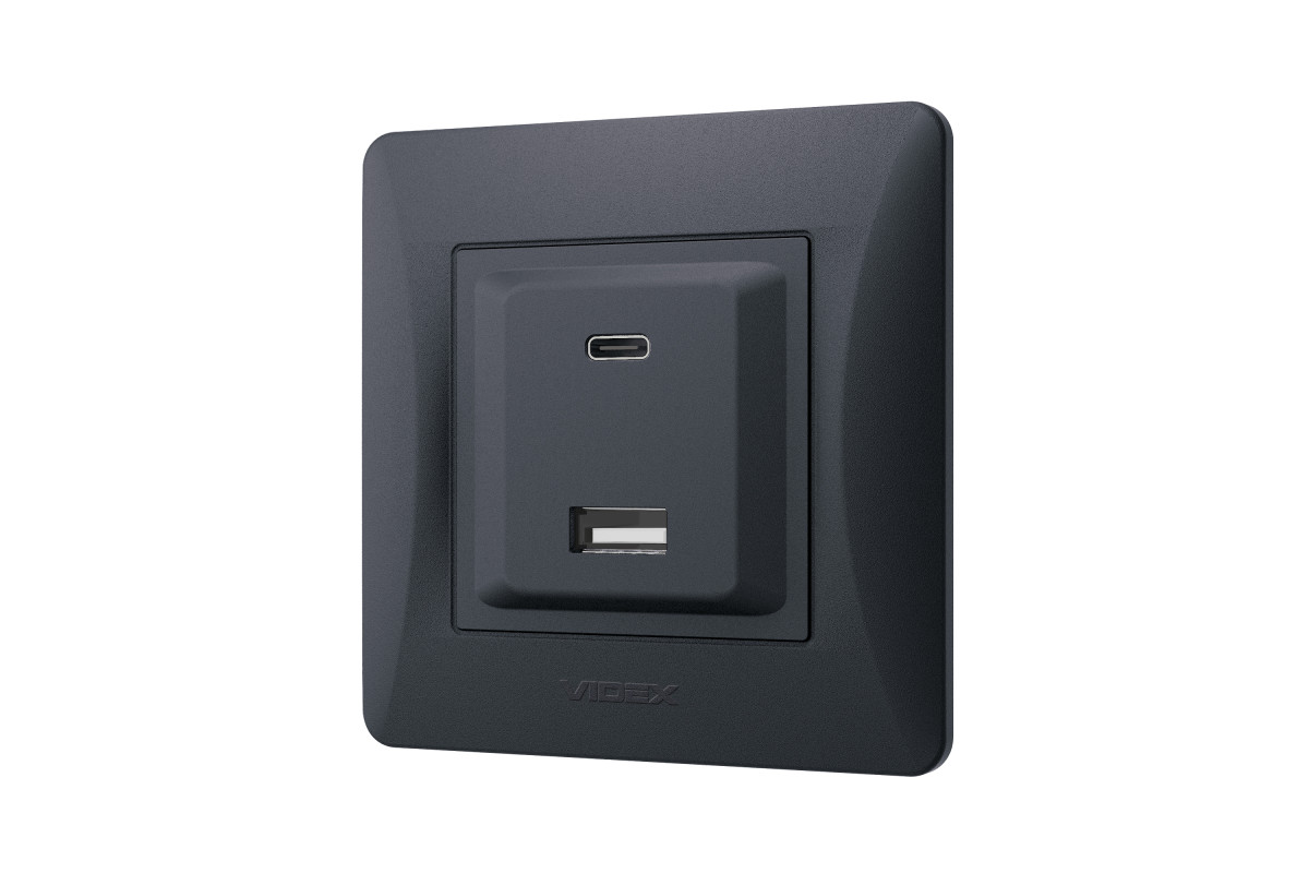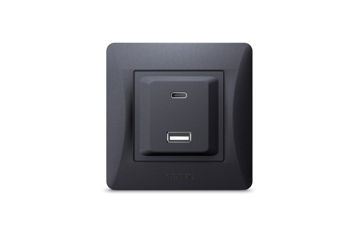 USB-A + USB-C PD20W socket black graphite VIDEX BINERA