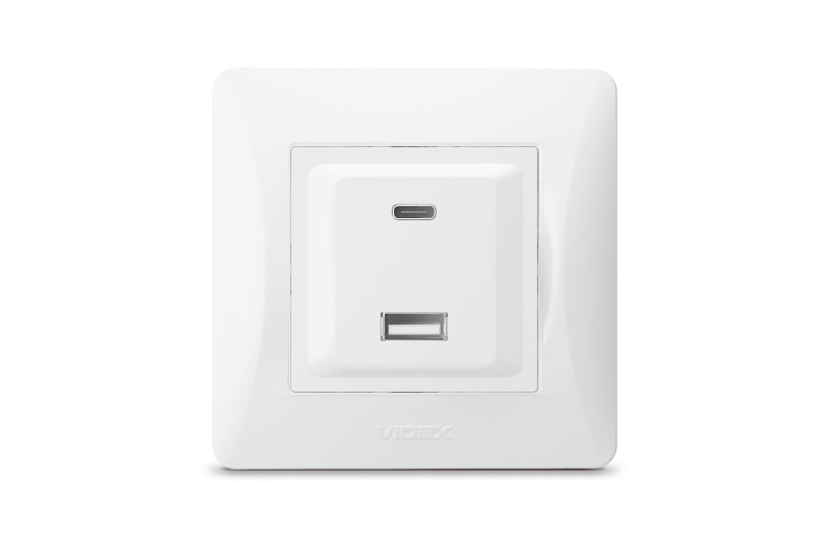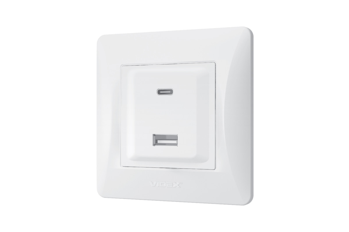 USB-A + USB-C PD20W socket white VIDEX BINERA