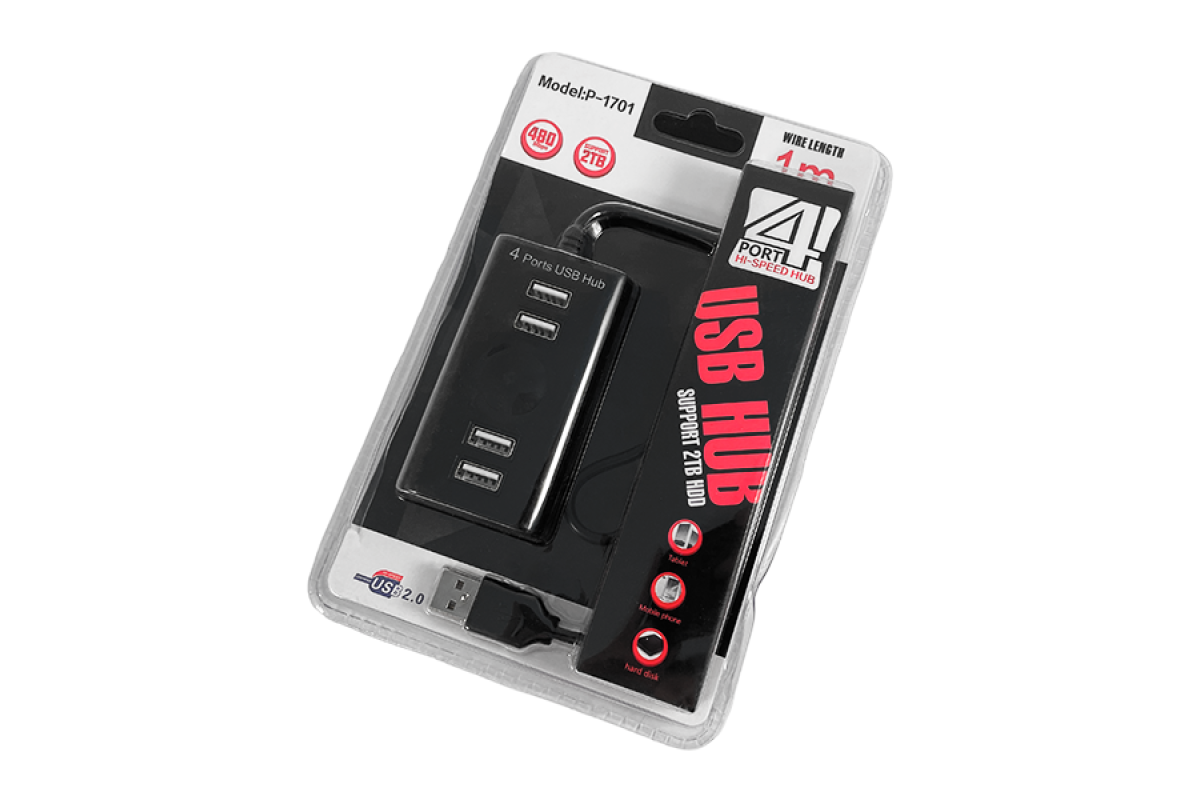 USB HUB with 4 USB 2.0 ports (Model:P-1701), in blister, 4-1035, active