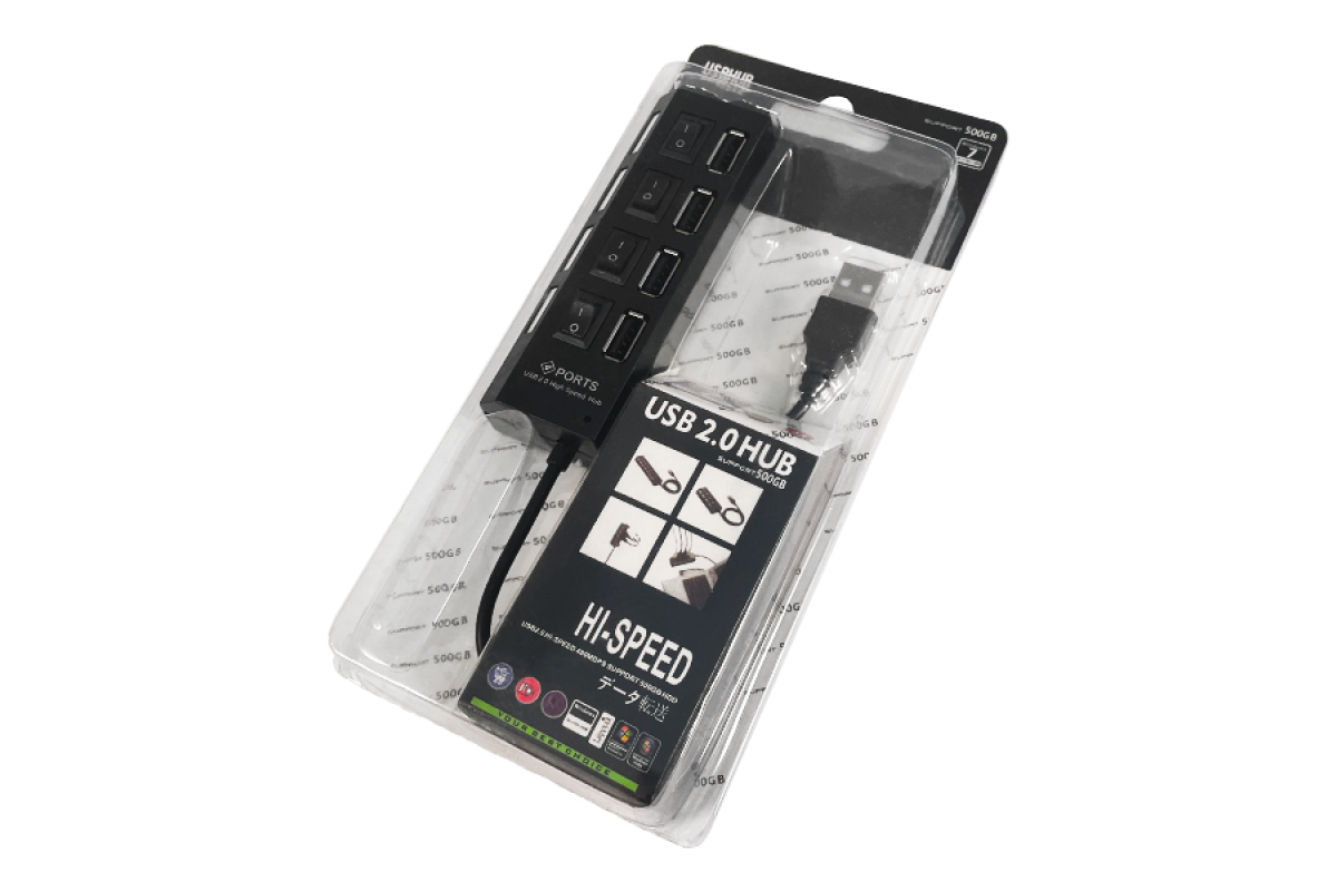 USB HUB with 4 USB 2.0 ports, with switches and backlight (in blister), 4-1030, active