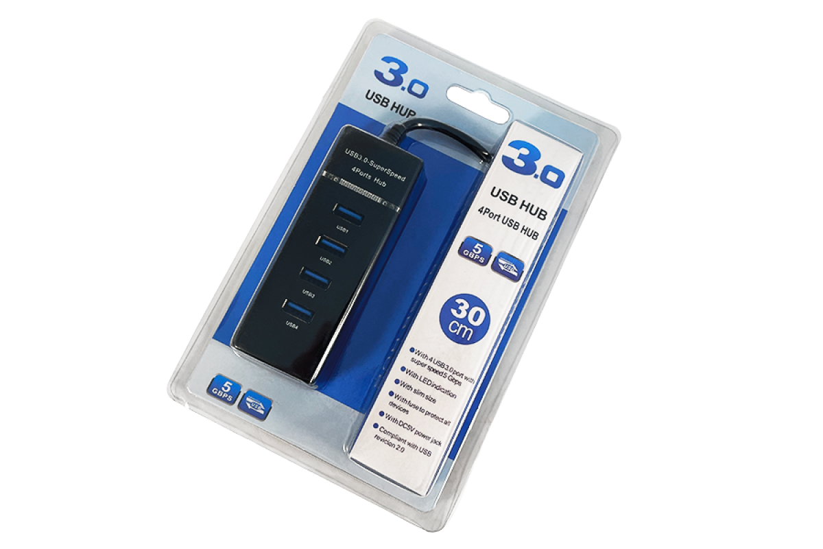 USB HUB with 4 USB 3.0 ports with backlight, in blister, 4-1040, passive
