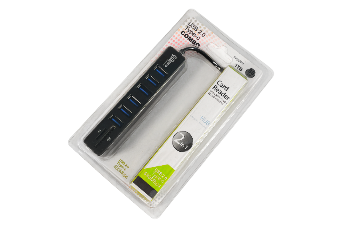 USB HUB with 6 USB 3.0 ports with card reader, in blister, 4-1068, passive