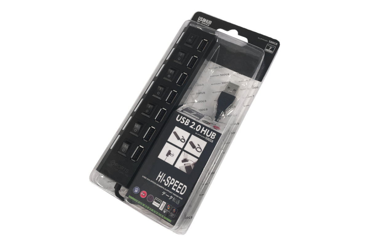 USB HUB with 7 USB 2.0 ports, with switches and backlight, 4-1060, 4-1072, active