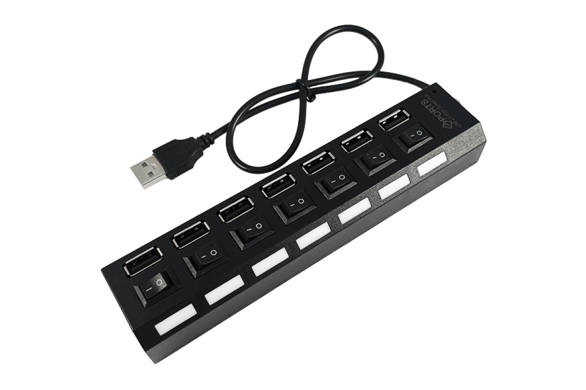 USB HUB with 7 USB 2.0 ports, with switches and backlight, 4-1073, active