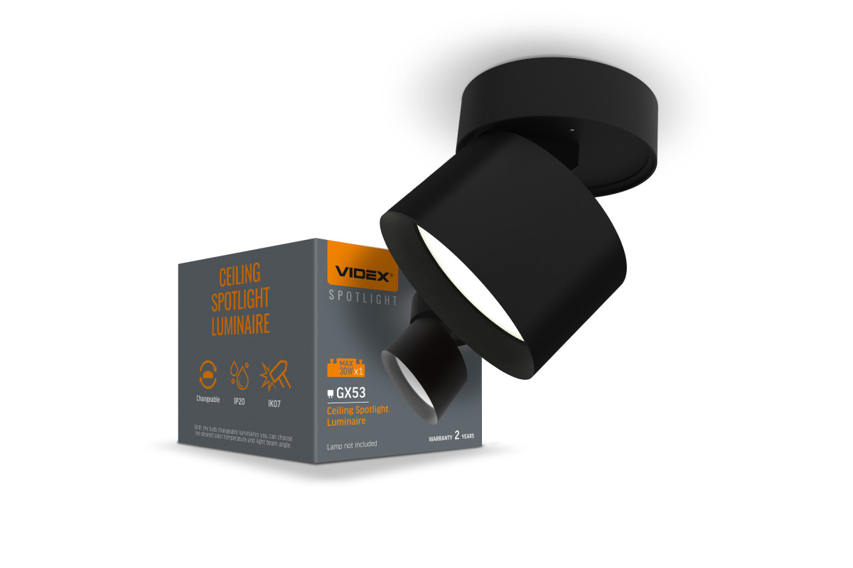 VIDEX GX53 lamp swivel Black VL-SPF18B-B