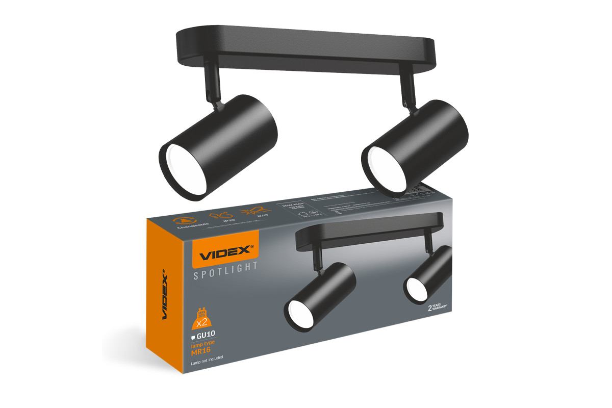 VIDEX lamp for 2xGU10 surface-mounted swivel lamp black VL-SPF05B-BPB