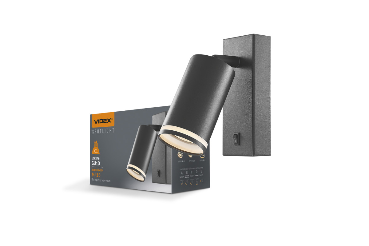 VIDEX lamp for lamp GU10 SPF05E wall mounted with button black