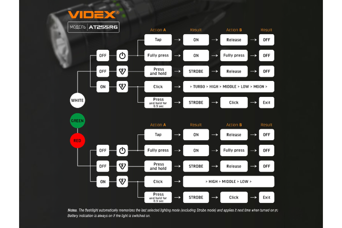 VIDEX VLF-AT255RG tactical LED flashlight 2000Lm 5000K