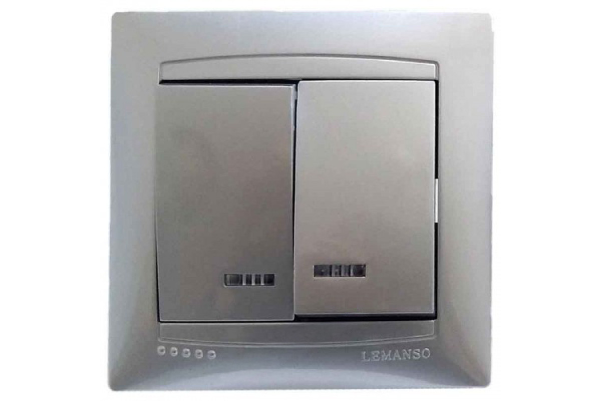 Вимикач 2-й + LED підсвітка LEMANSO Сакура срібло LMR1307