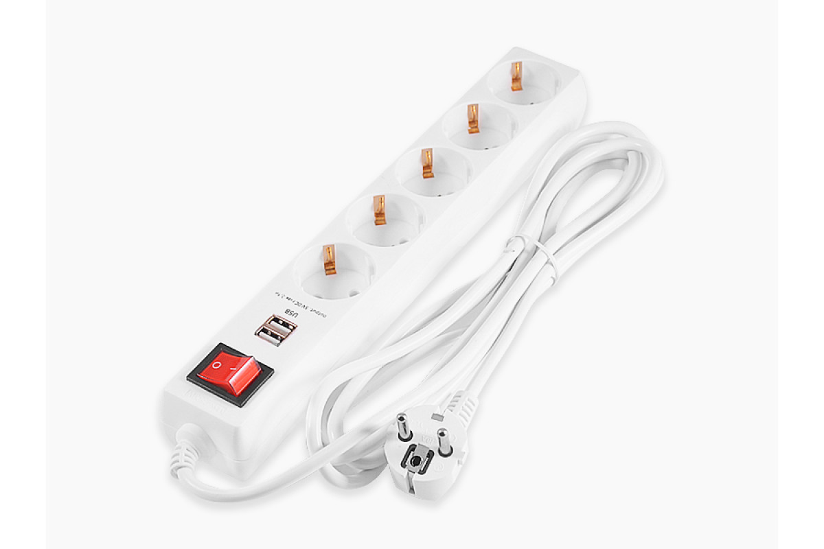 White extension cord 5 Gbps. 3m with 2*USB (2100mA) with grounding 3x0.75mm max 2500W with button / LMK71002 Lemanso